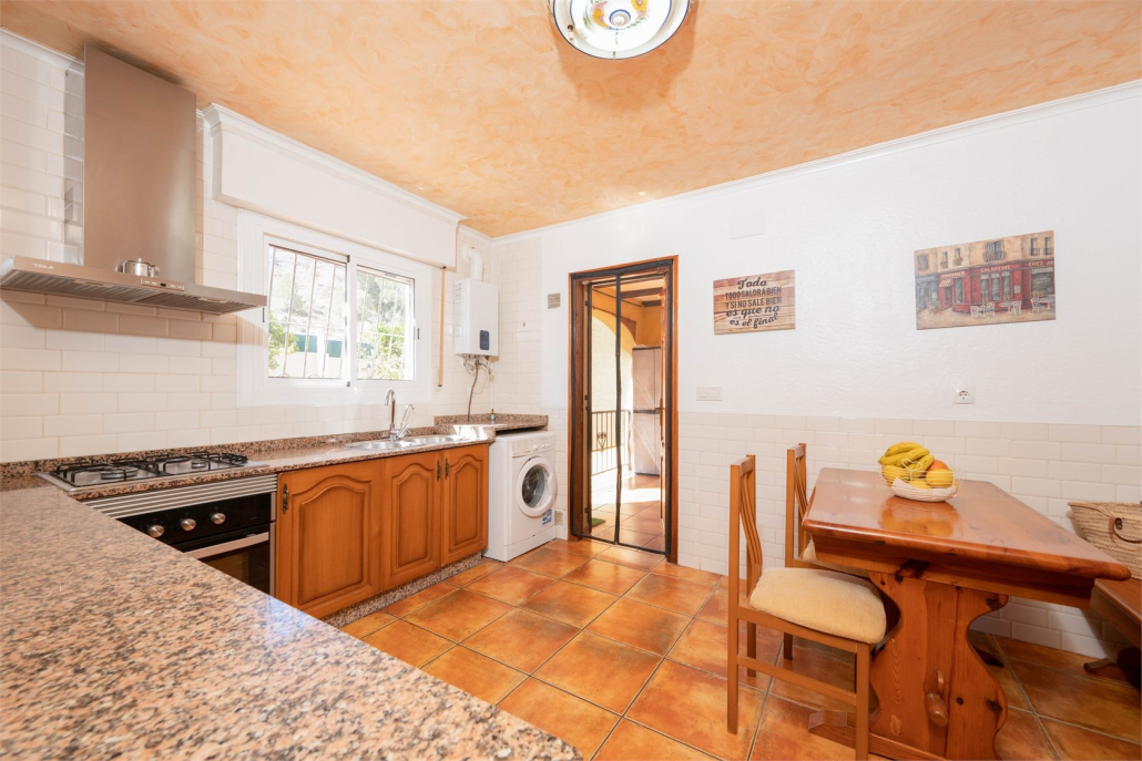 Cocina moderna de concepto abierto, funcional y luminosa, completamente equipada. Desde aquí, podrás cocinar mientras disfrutas de las vistas al jardín. Sus líneas limpias y conexión visual con el salón la convierten en el corazón del hogar.