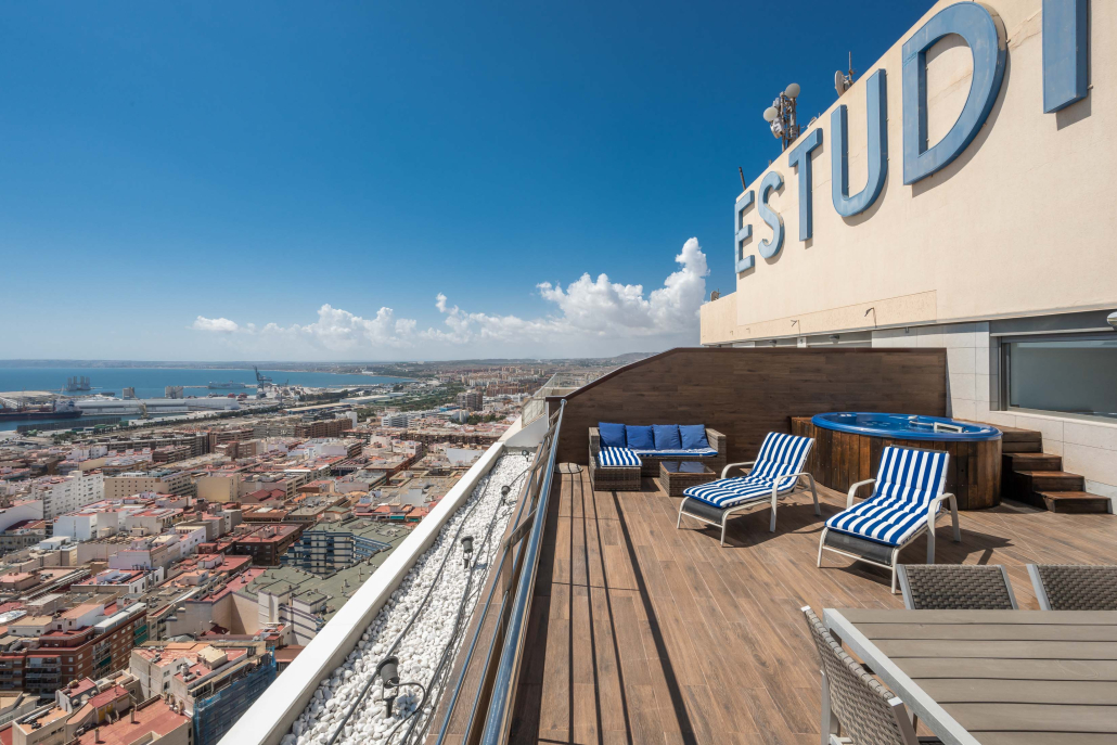 55 metros cuadrados con vistas panorámicas sobre la ciudad y la costa, además de un jacuzzi.