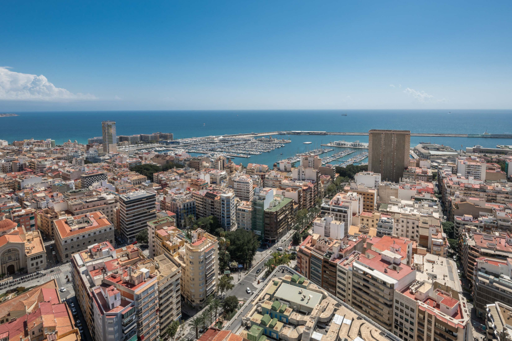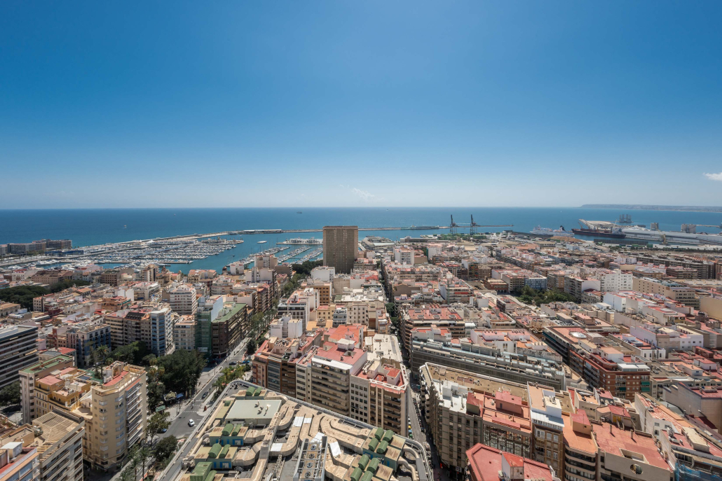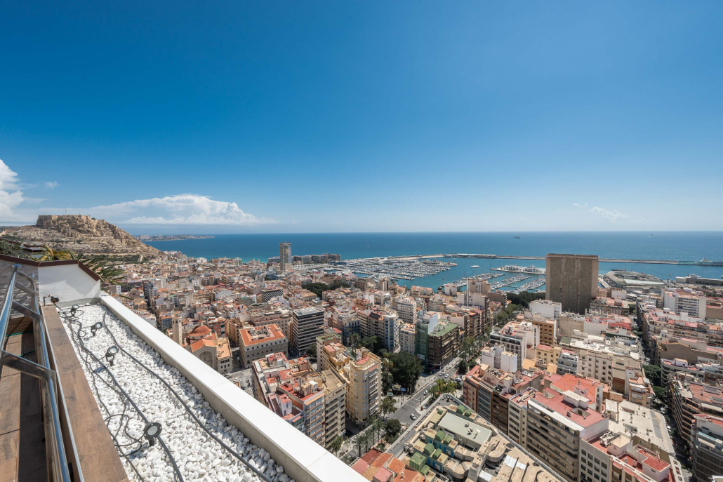 Este ático único en su tipo se distingue por ser la vivienda más alta de Alicante, brindando unas vistas impresionantes y exclusivas de la ciudad y la costa. Con una superficie de 60 metros cuadrados, este espacio ofrece una distribución eficiente y luminosa. Cuenta con dos habitaciones, ambas con ventanas al exterior, armarios empotrados y aire acondicionado. Una de las habitaciones tiene acceso directo a la espectacular terraza de 55 metros cuadrados, que incluye un jacuzzi para disfrutar de momentos de relajación con el Mediterráneo como telón de fondo.