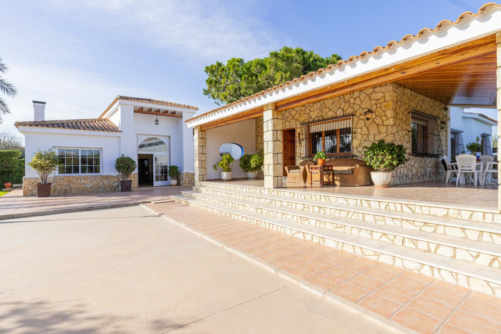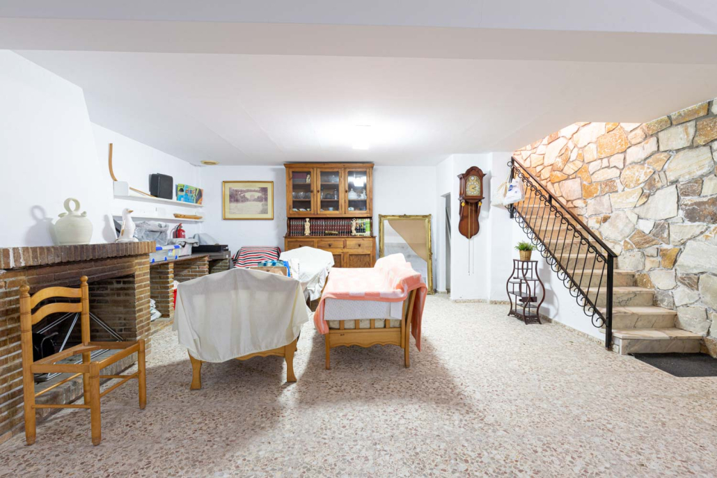 La villa principal tiene cuatro amplios dormitorios, tres de los cuales tienen espacio para una cama doble y armarios, y uno tiene espacio para una cama individual y un armario. Toda la villa se experimenta como muy luminosa y encantadora con sus tradicionales detalles de madera. Está bien cuidado, pero es posible que necesite una actualización para darle una sensación más moderna. El salón es amplio y hay espacio para un sofá y un comedor. También hay una gran chimenea. La cocina se encuentra separada pero adyacente y tiene muchos gabinetes y buenas opciones de almacenamiento, así como grandes áreas de trabajo para trabajar. En la planta baja está el sótano que se puede utilizar como espacio habitable o como garaje, según sus necesidades. Hay un dormitorio y un baño separados. En la casa de invitados, que se encuentra separada en la parcela, hay todas las posibilidades de dividirla en más dormitorios, o usarla como está en este momento: una gran sala de estar con chimenea y grandes grupos de sofás.
