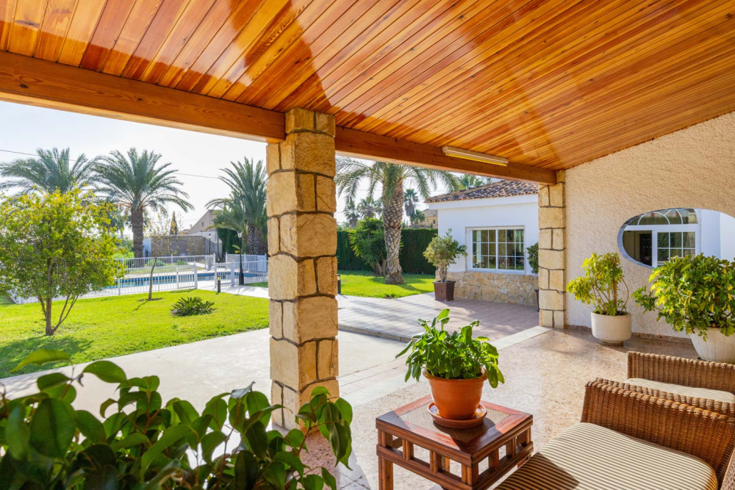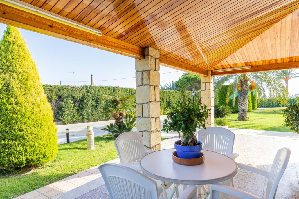 Esta villa de una sola planta con sótano amueblado se encuentra a solo 10 minutos de la costa y las largas playas de arena de Santa Pola, así como de la ciudad de Elche con su gran selección de restaurantes, cultura y compras. También se puede llegar al aeropuerto en pocos minutos en coche. Esta es la casa perfecta para quienes desean vivir en paz y tranquilidad, pero aún así tienen fácil acceso a todo lo que pueden necesitar para una vida bajo el sol.